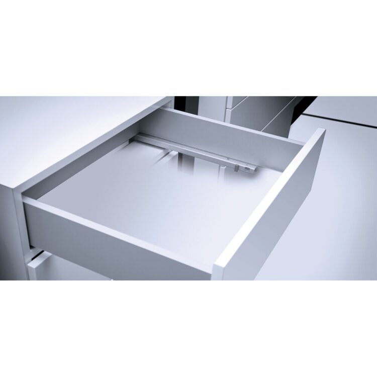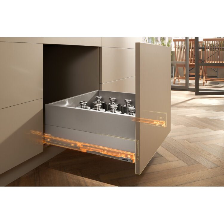 W szufladach , które mają utrudniony dostęp do swojej tylnej części, zastosować można z kolei częściowy wysuw – zazwyczaj pozwala on na wyciągnięcie szuflady poza obrys mebla na ¾ jej długości.